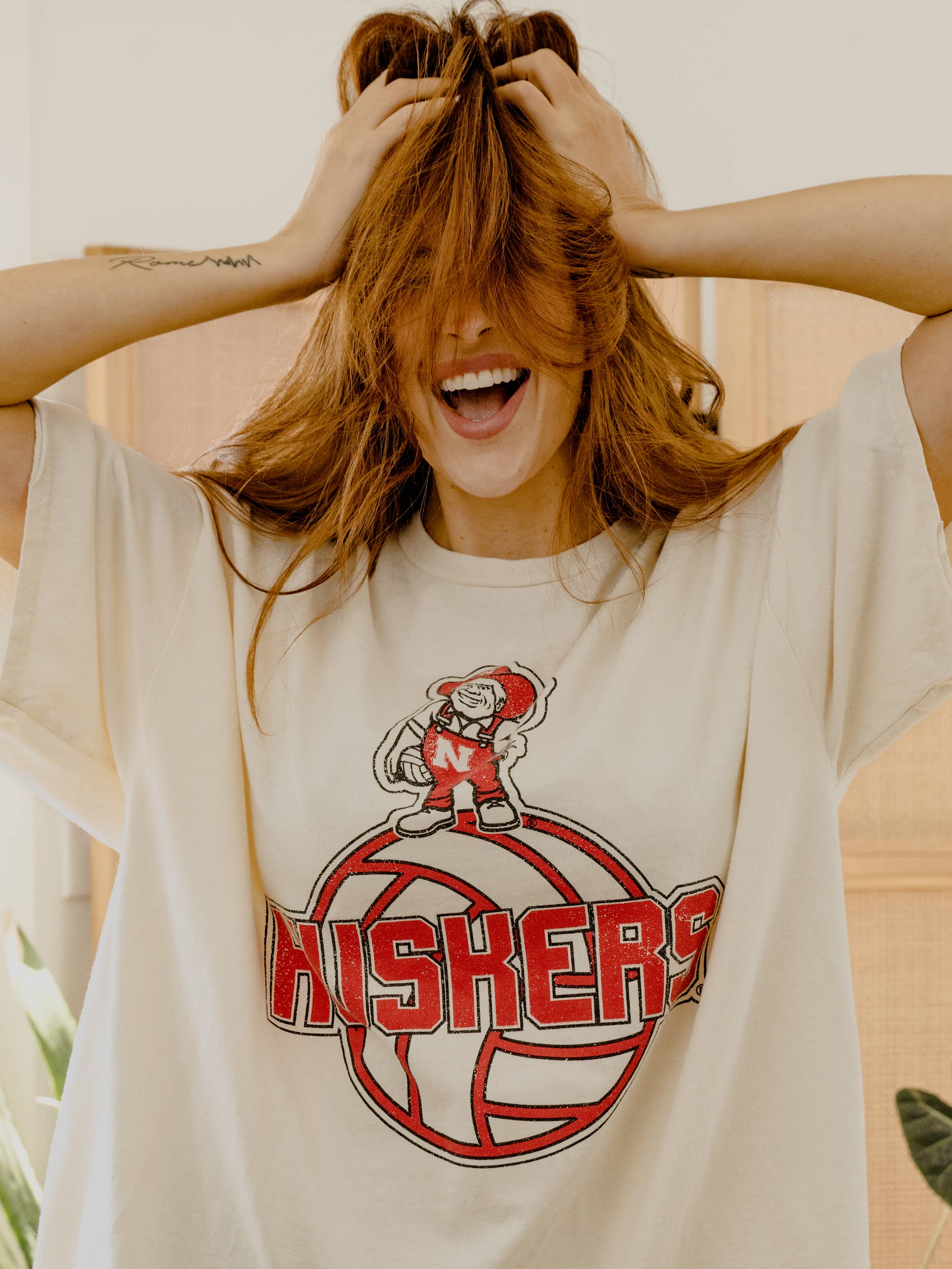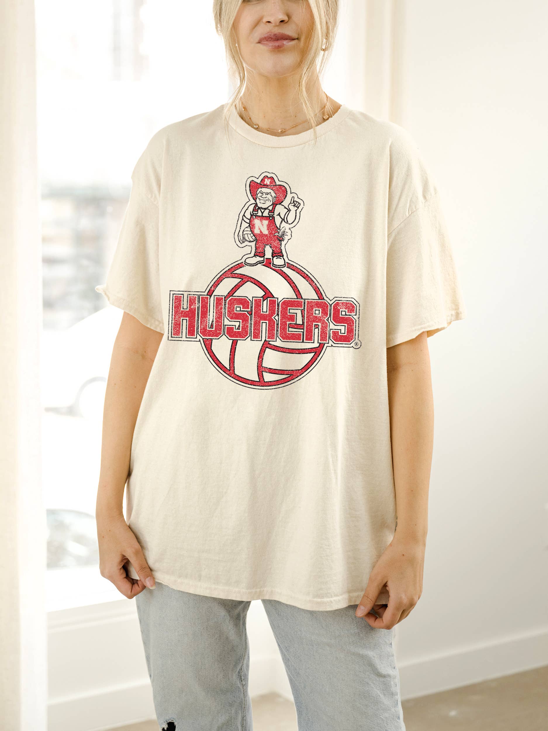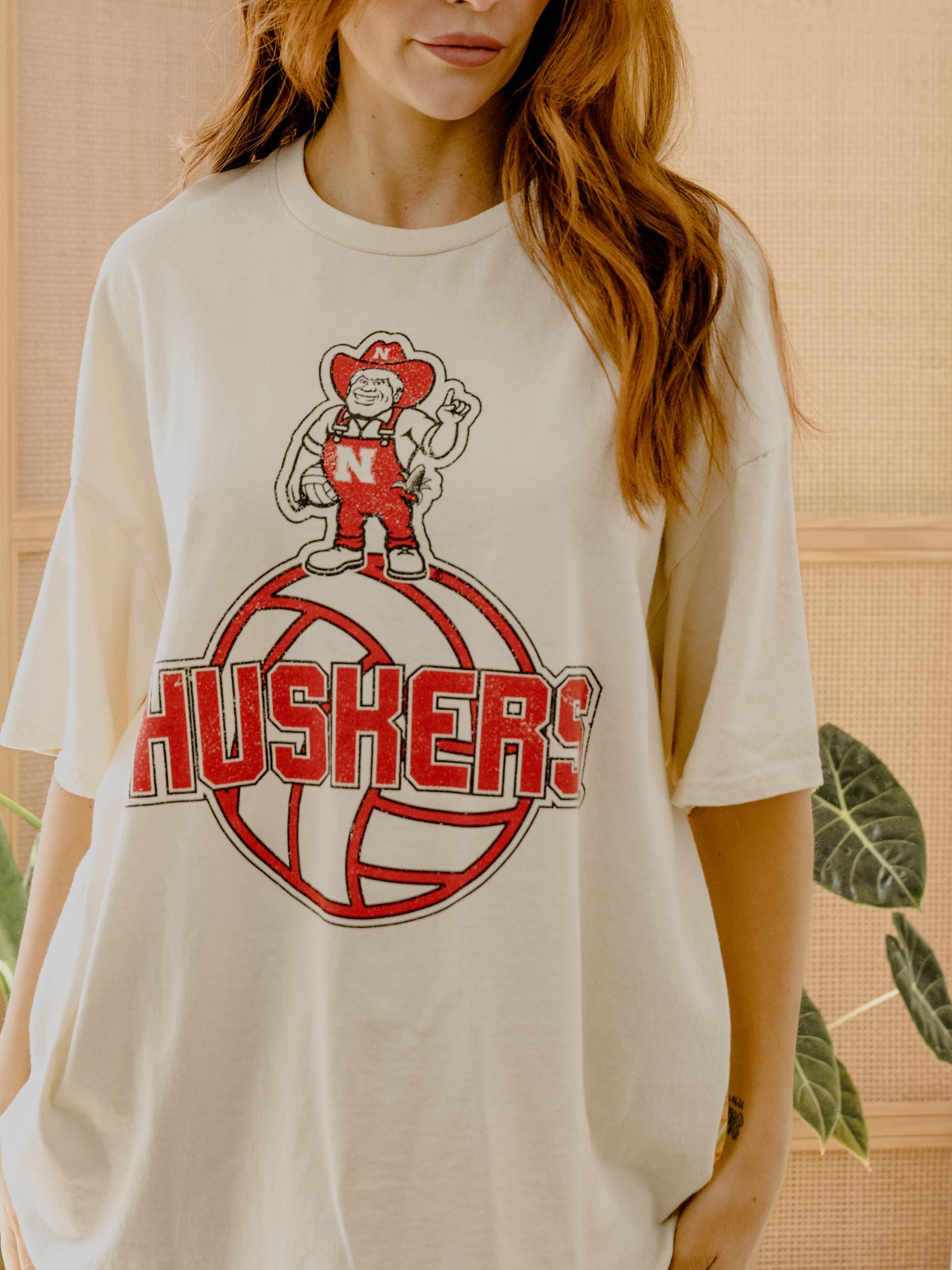 Nebraska Huskers Volleyball Mascot Off White Thrifted Tee